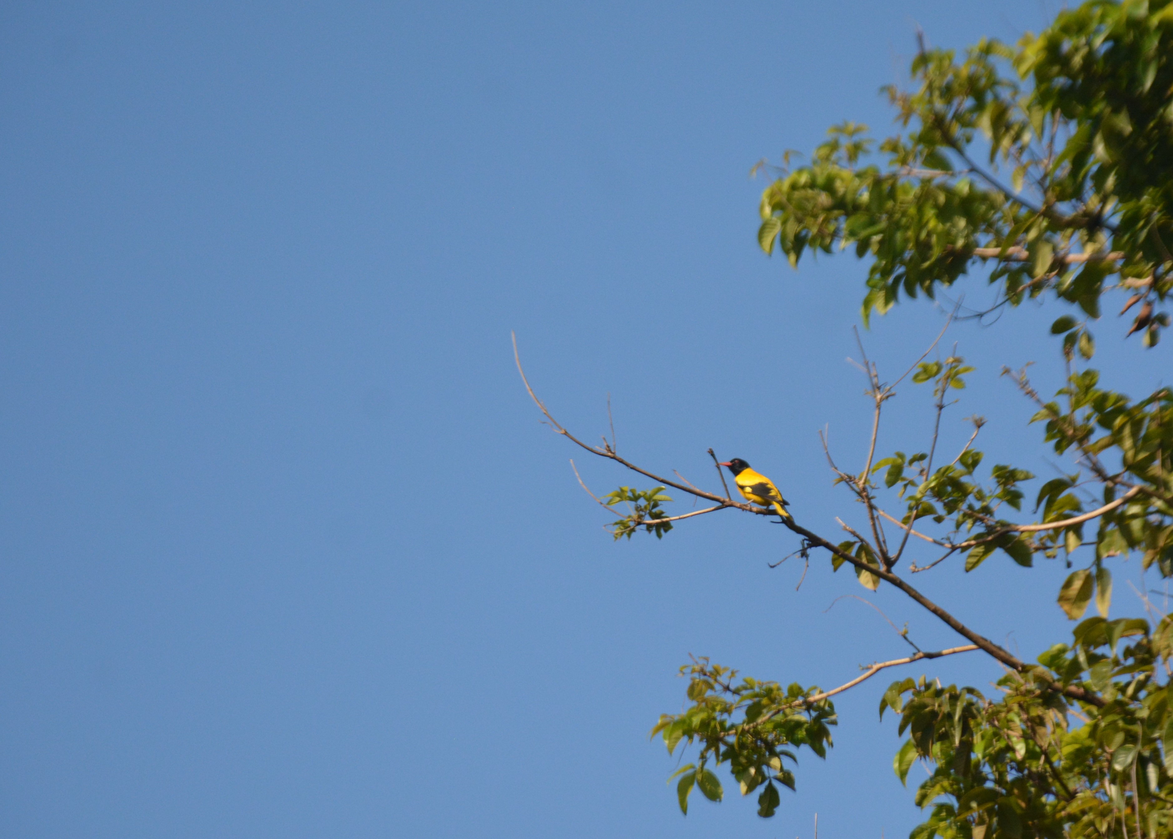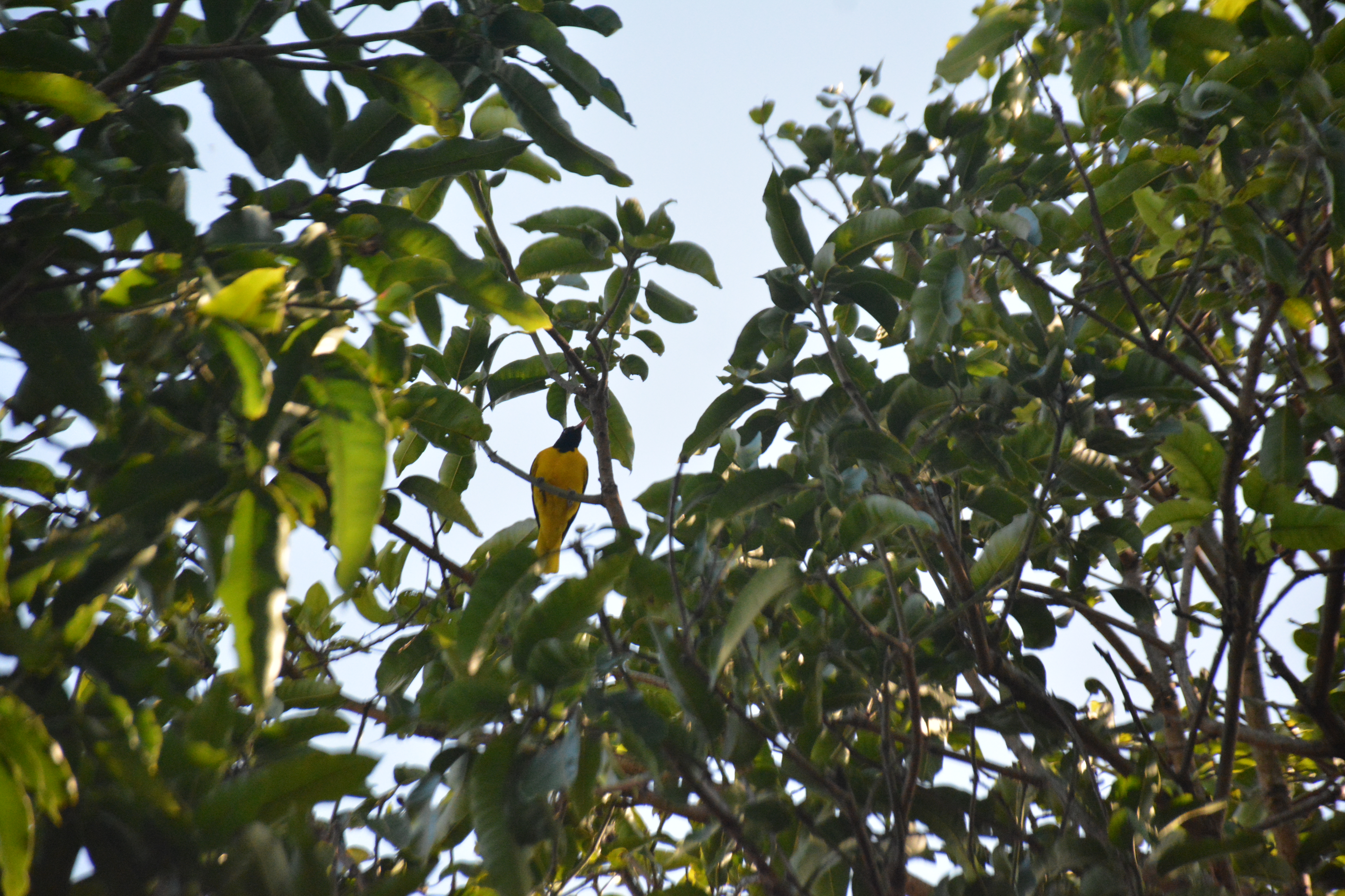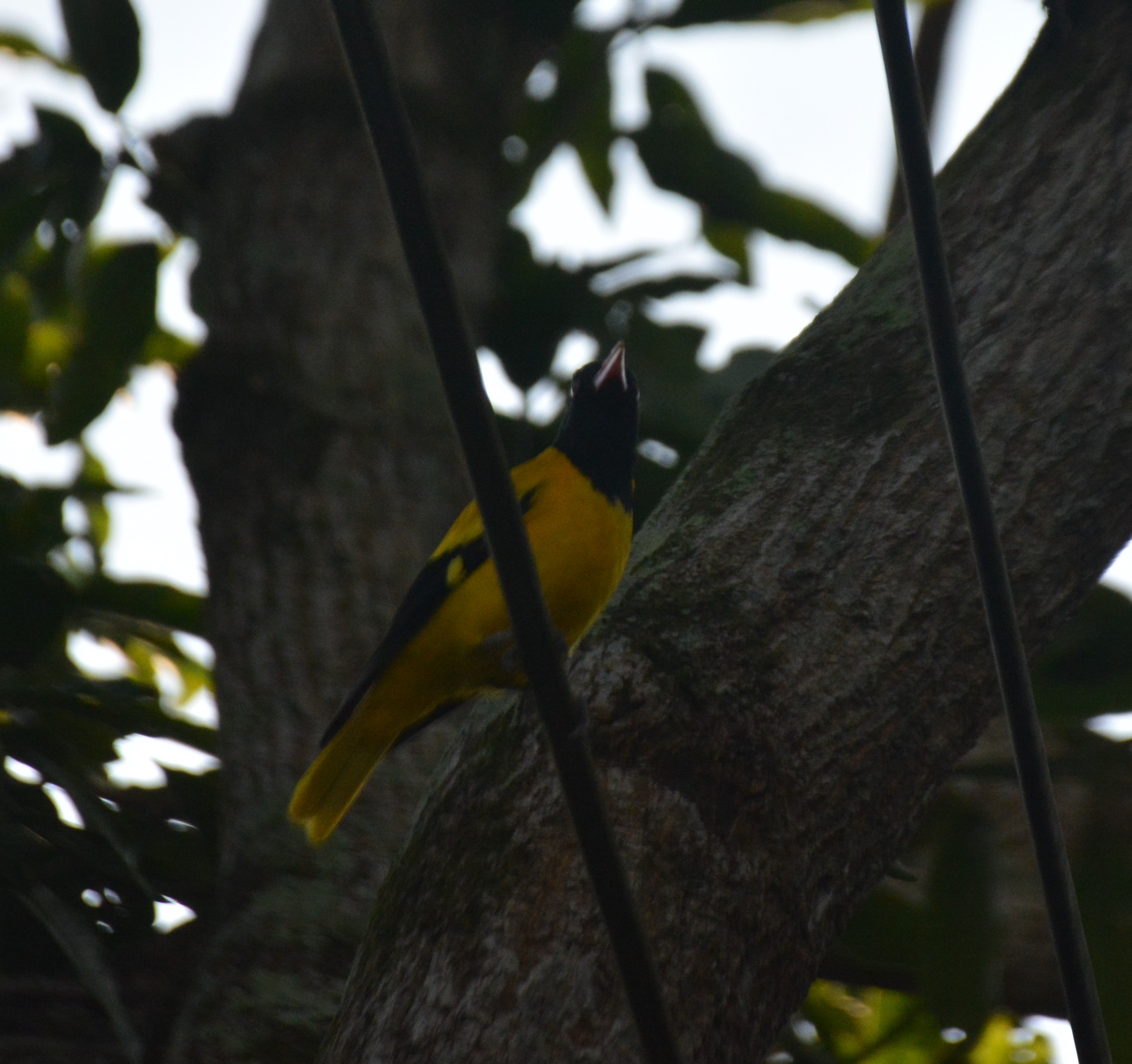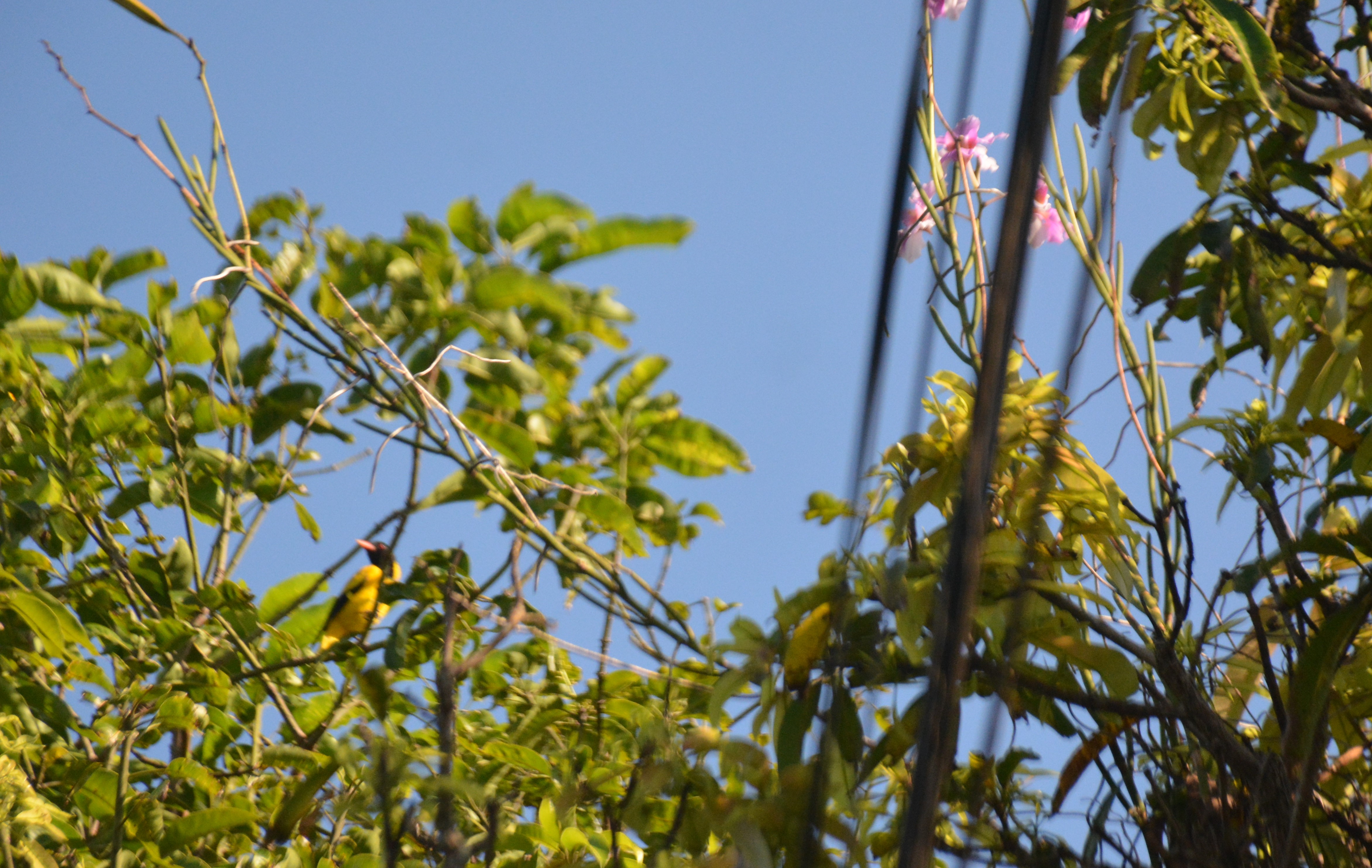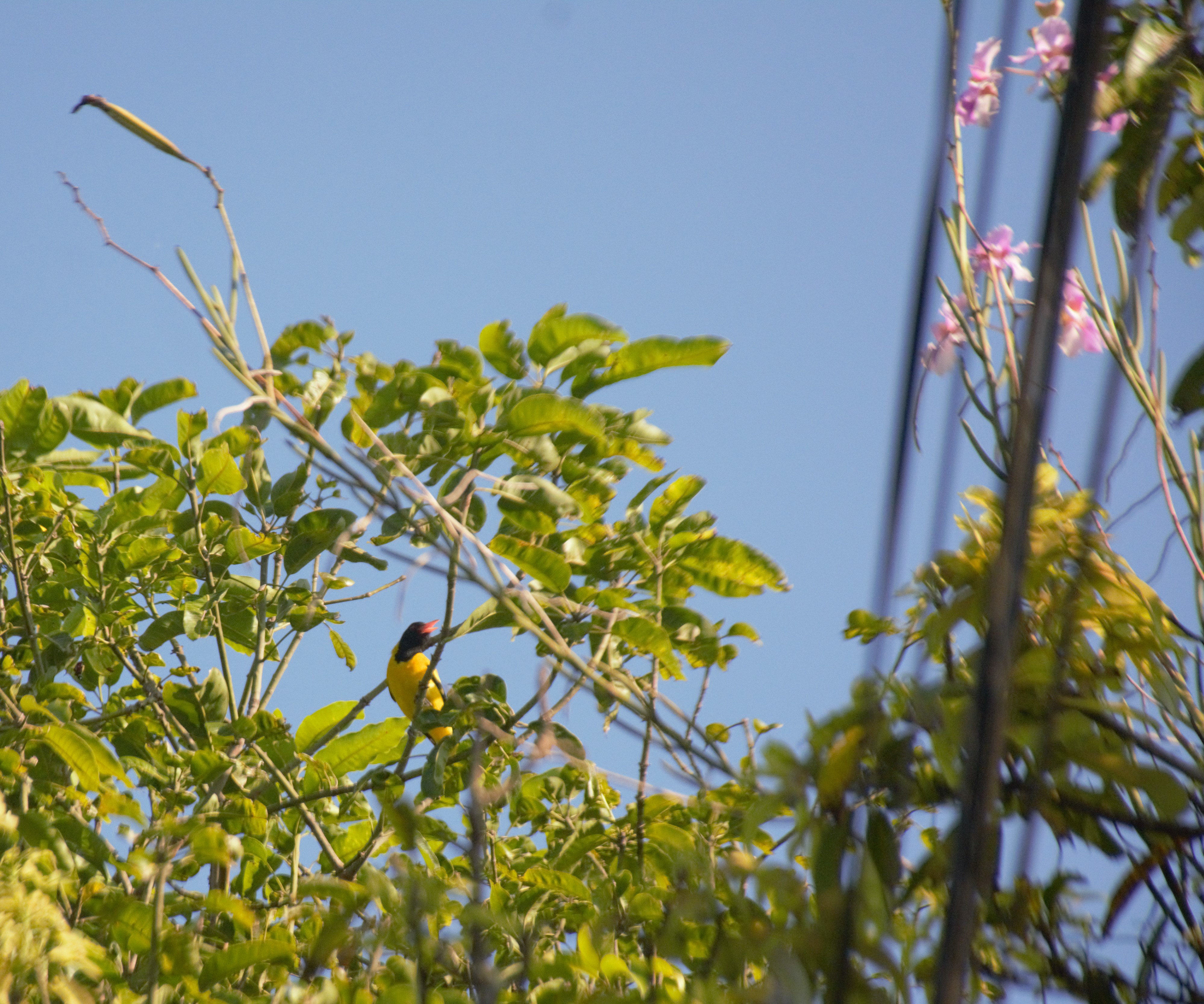 These are far off and close-up photographs of a pair of Black-hooded Orioles (Oriolus xanthornus). All pictures except two are unedited.