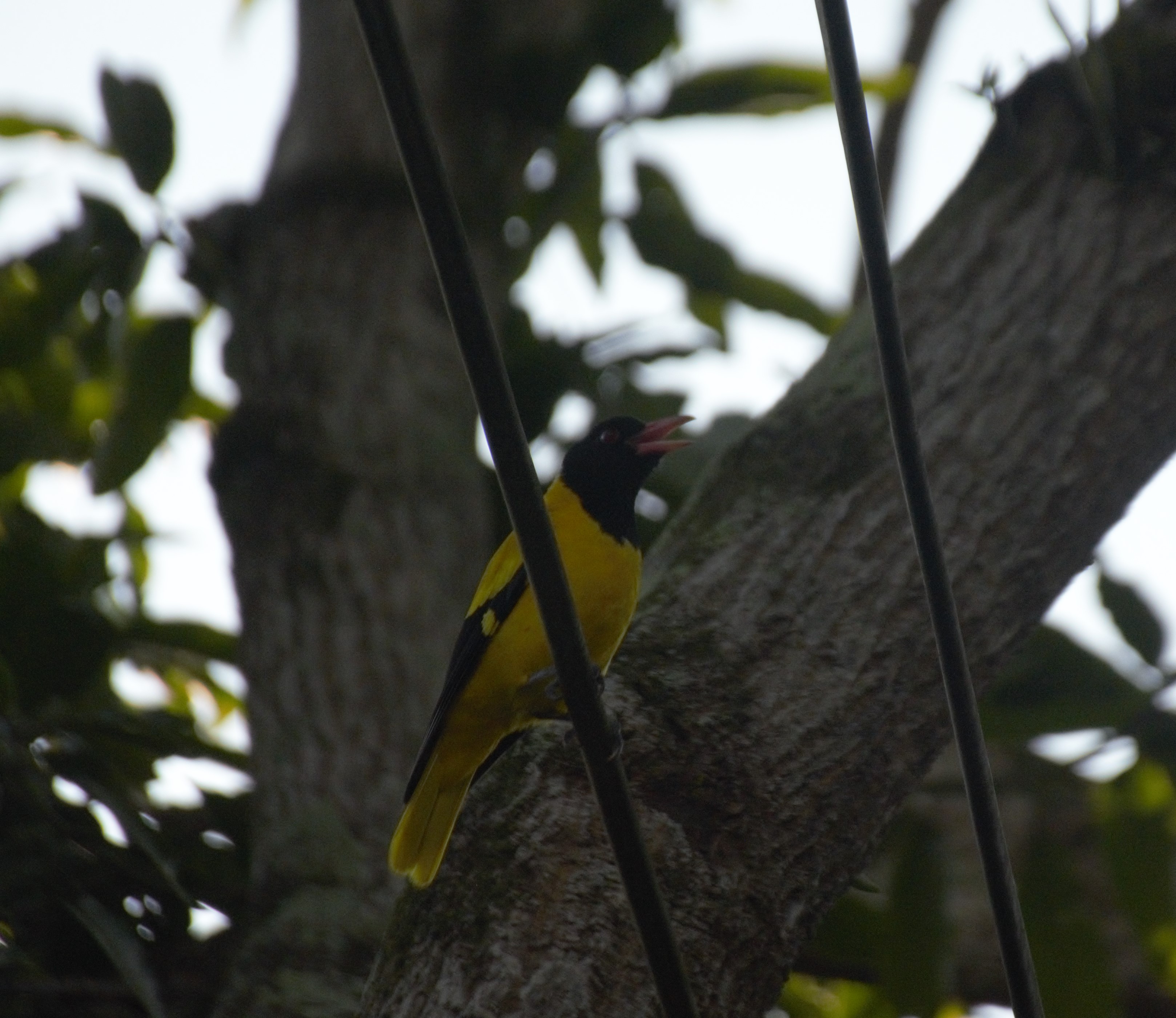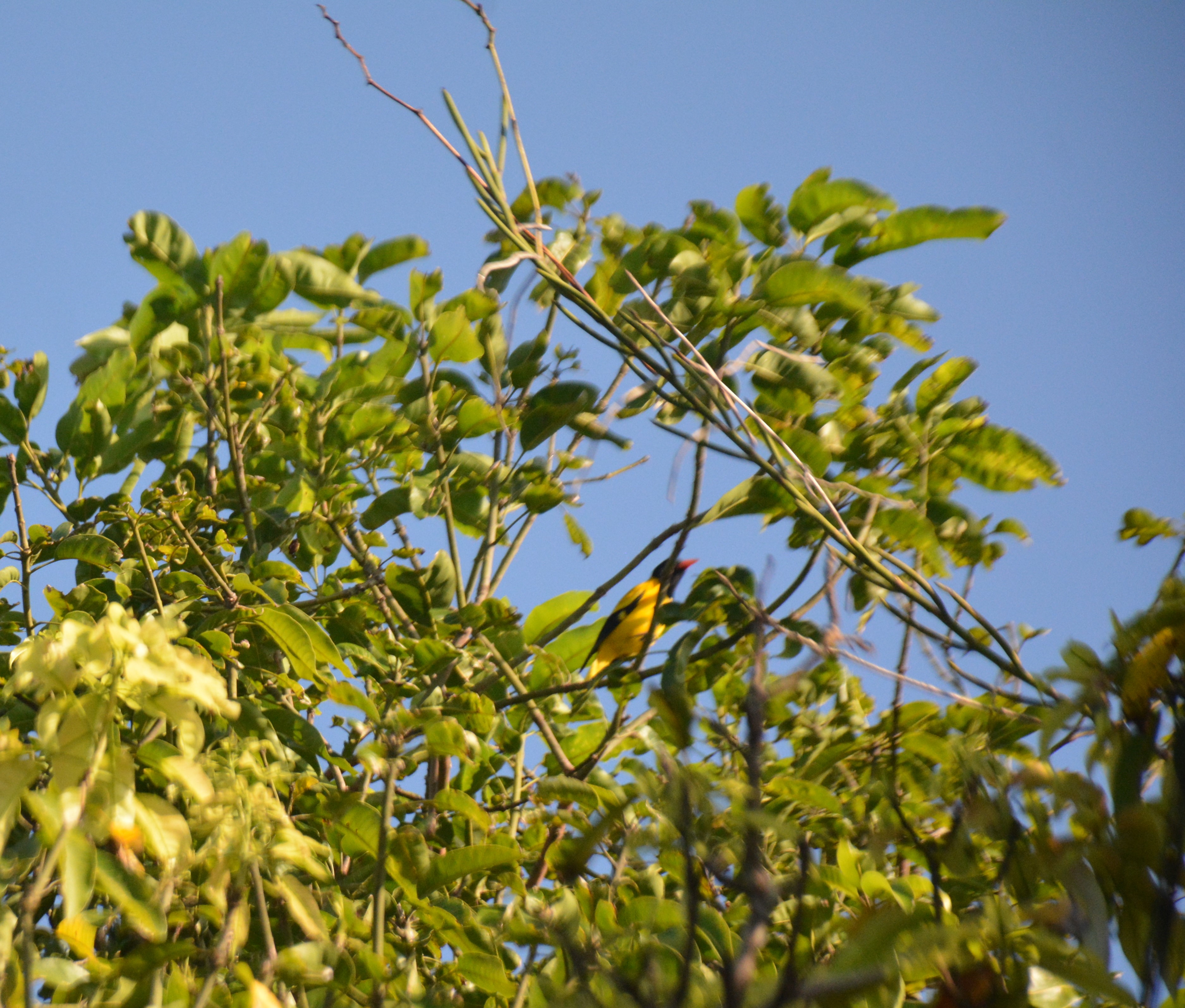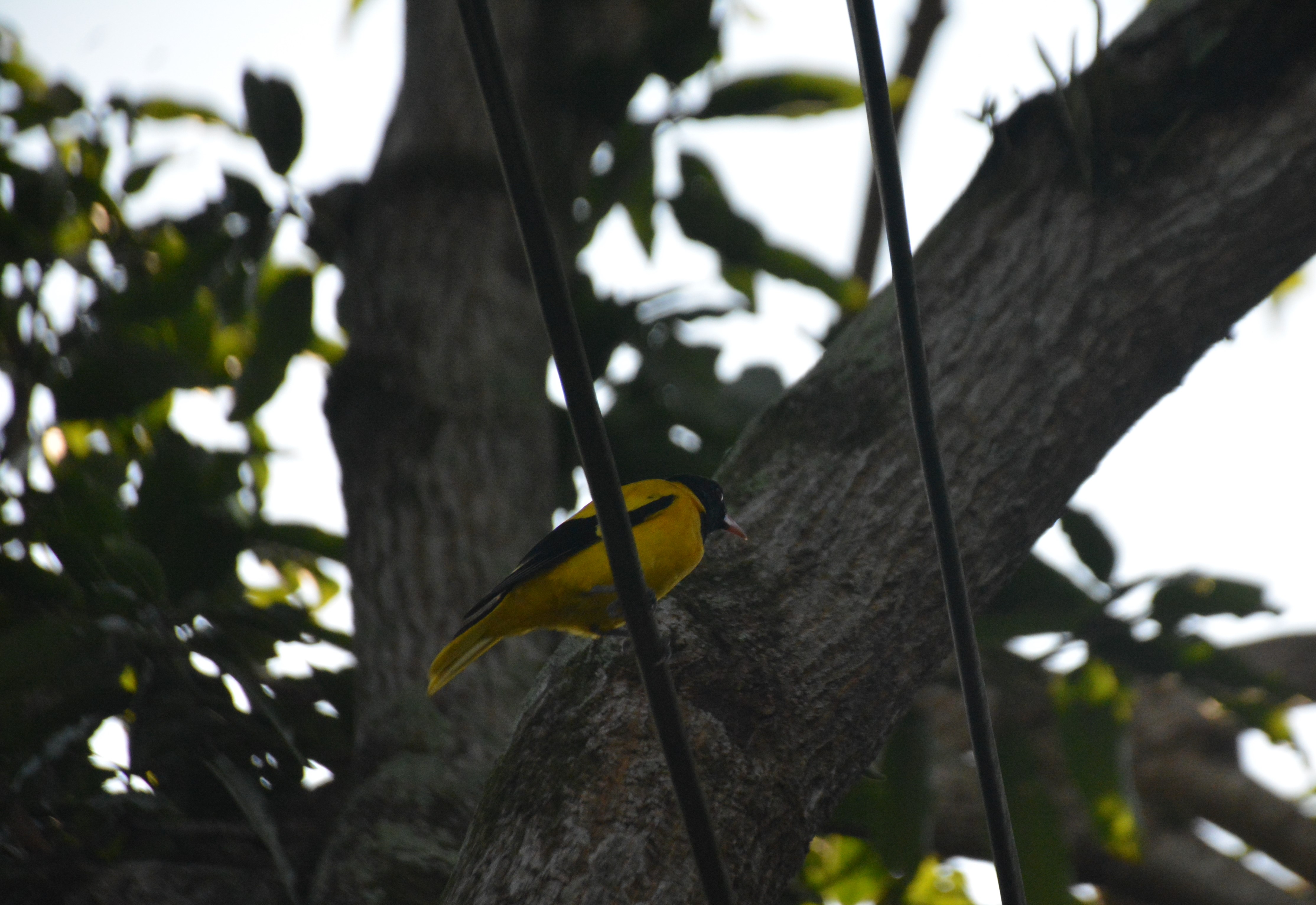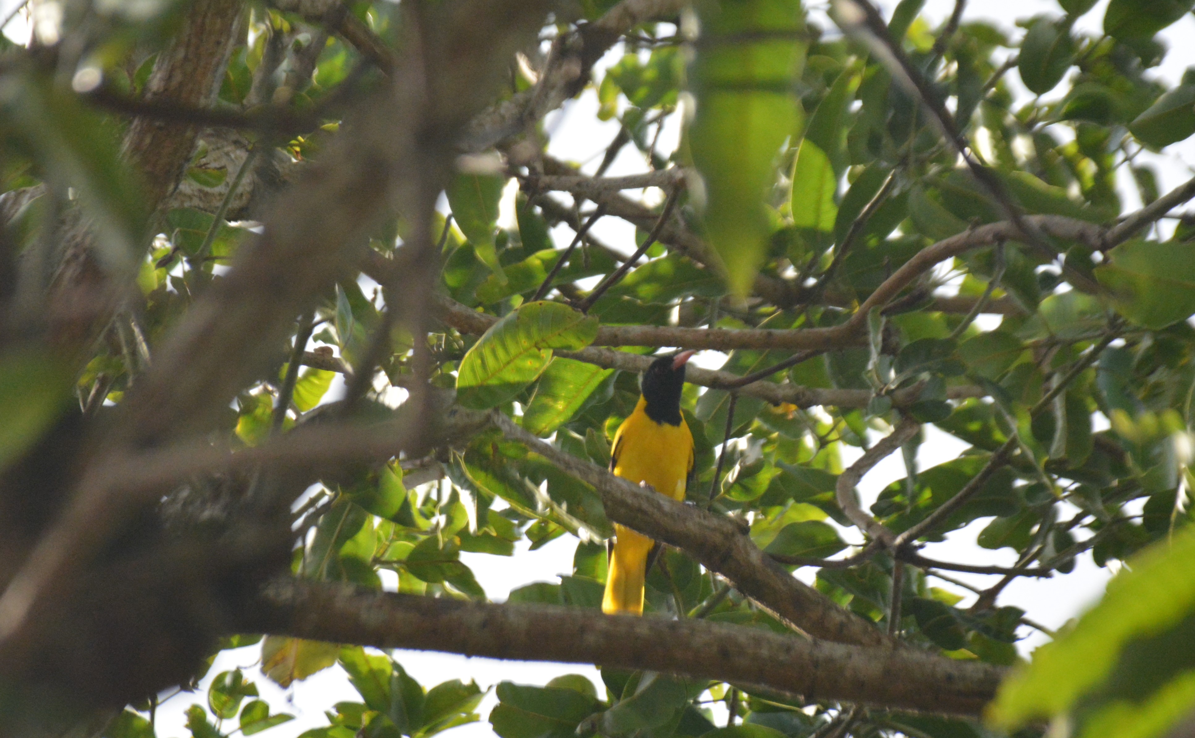 These are far off and close-up photographs of a pair of Black-hooded Orioles (Oriolus xanthornus). All pictures except two are unedited.