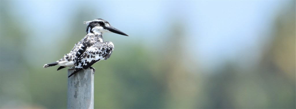 A black and white kingfisher that is classified as Least Concern (LC) by the IUCN. It is found across Asia, Africa and the Middle East and is known to live in proximity to water bodies feeding on fish.